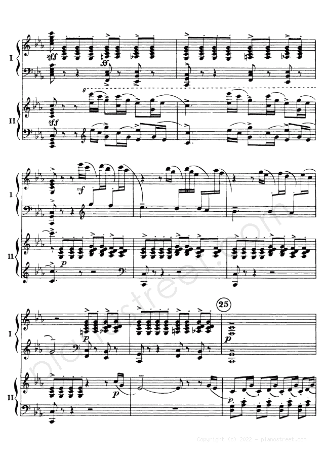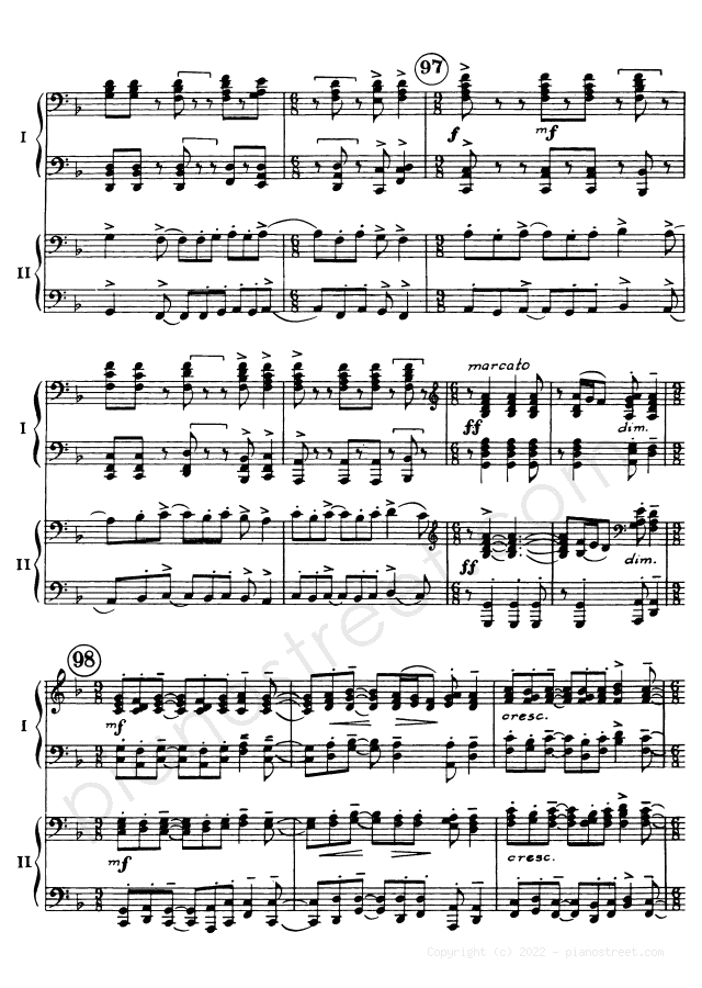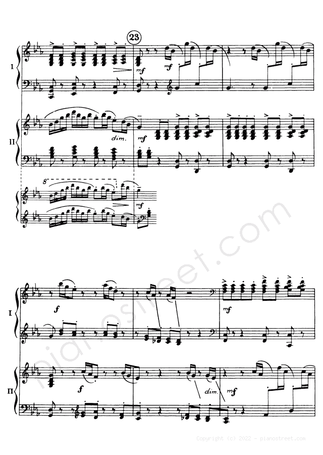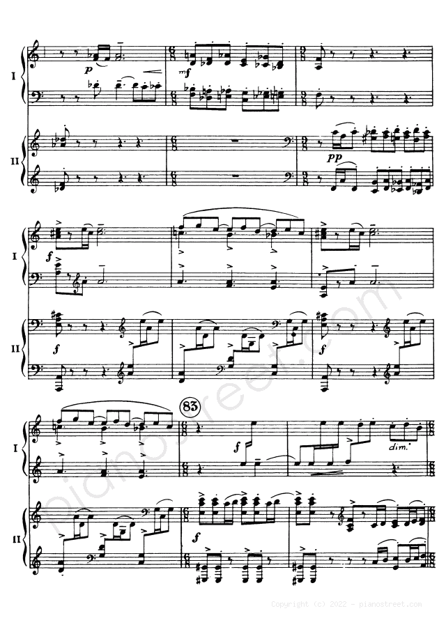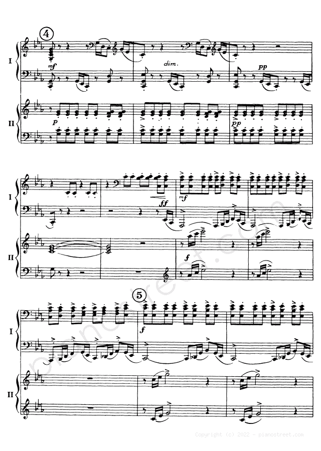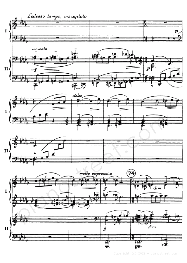 DOWNLOAD Symphonic Dances - for two pianos Op. 45 by Sergey Rachmaninoff (published in 1940) . High quality classical piano scores from the Piano Street sheet music library.