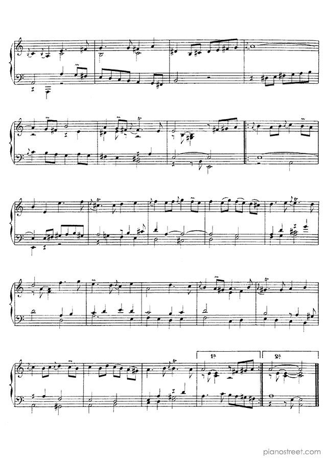 Piano sheet music and recordings. This piece is from First Book of Harpsichord Pieces by Jean Philippe Rameau: Second Allemande No. 3 in A Minor (published in 1706) . Level 3, Period: Baroque