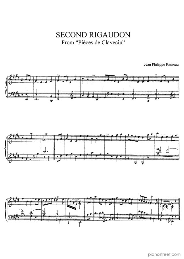 Second Rigaudon in E Major - No. 8 is a piano piece by the baroque composer Jean Philippe Rameau who lived between the years 1683 and 1764.
