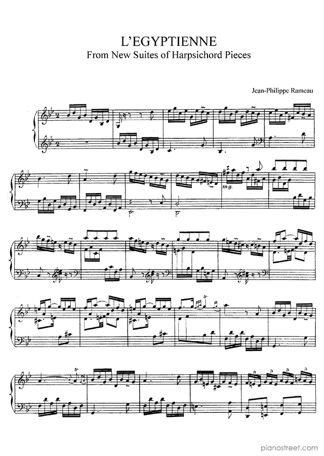 DOWNLOAD The Egyptian in G Minor No. 16 by Jean Philippe Rameau (published in 1728) . High quality classical piano scores from the Piano Street sheet music library.