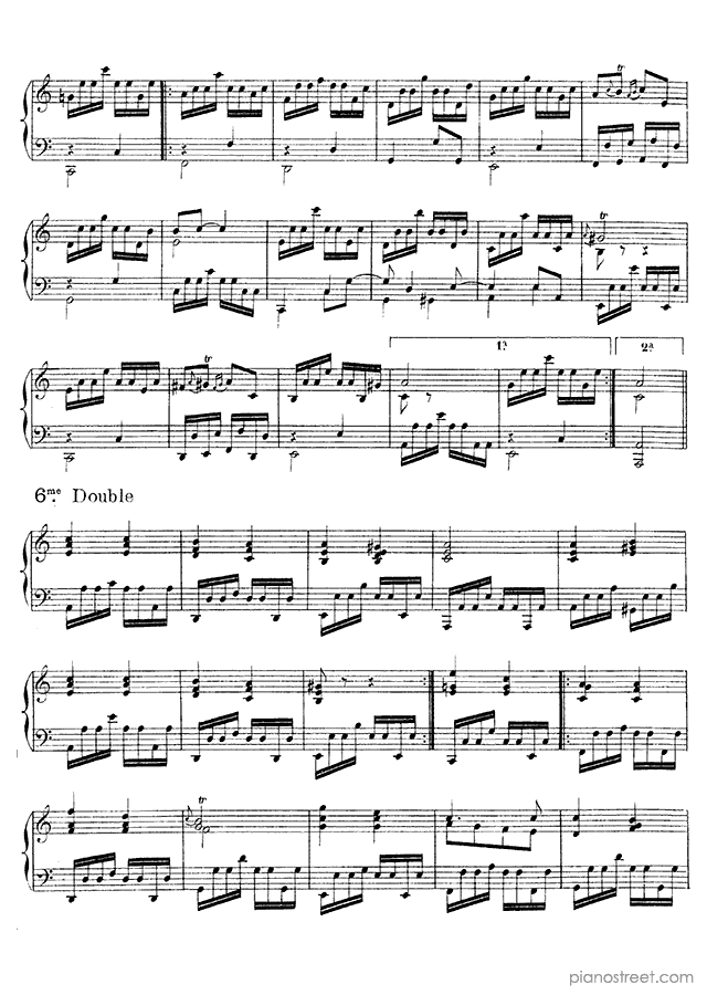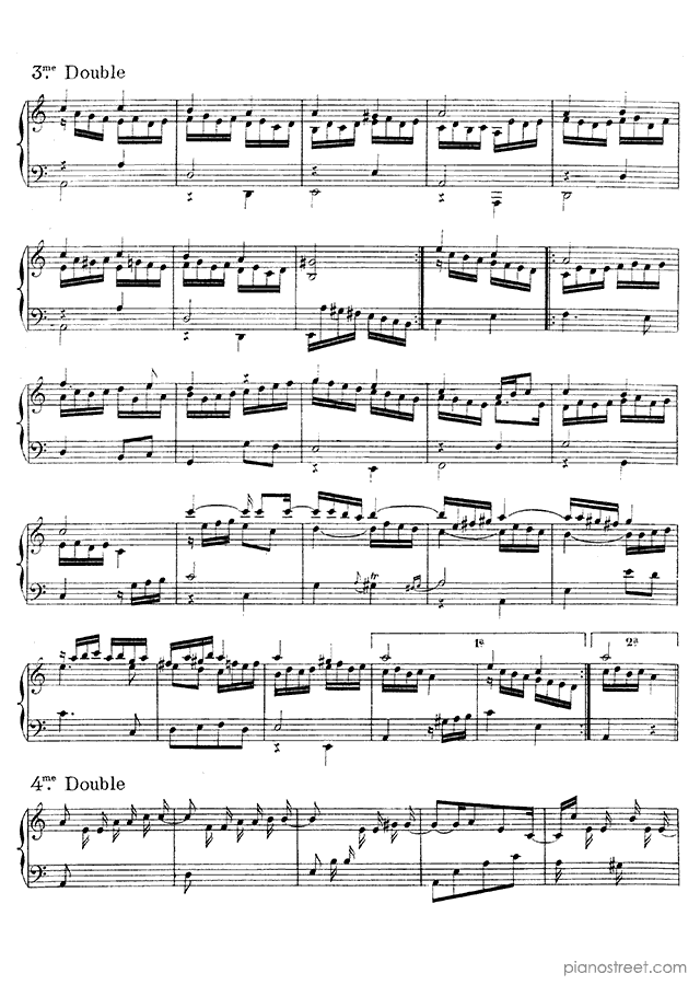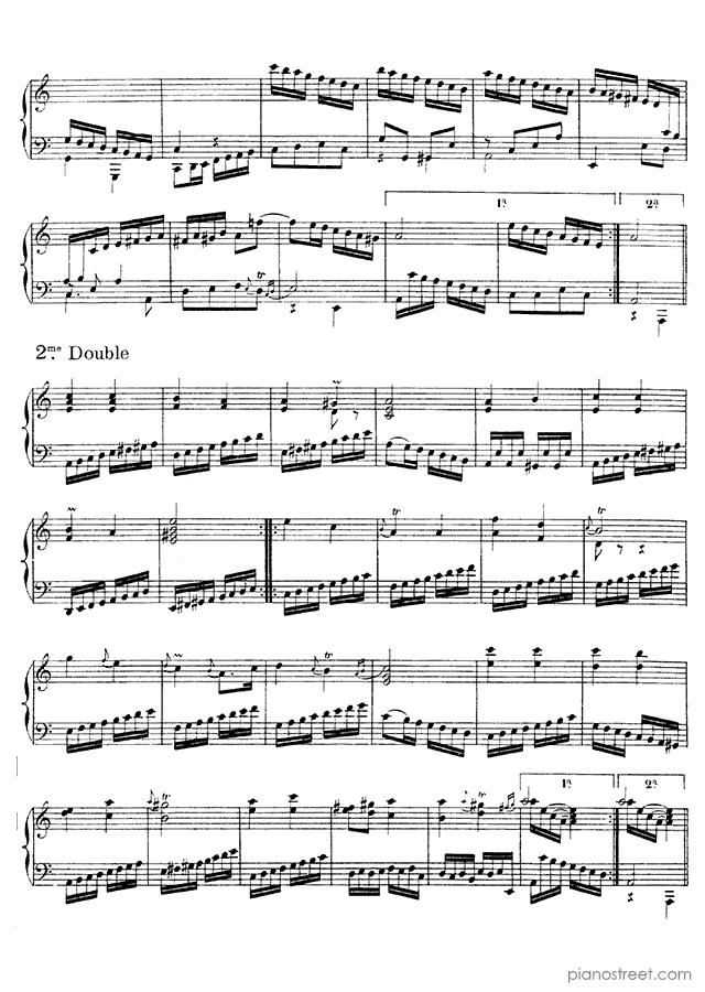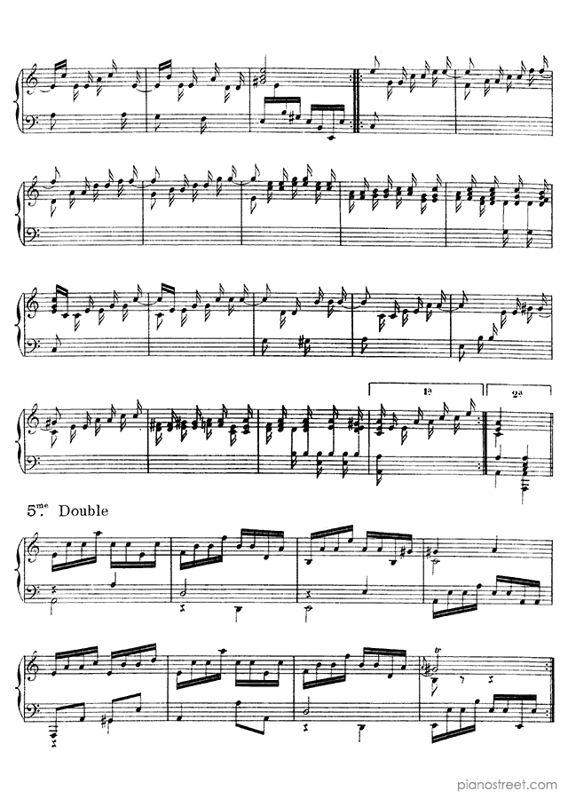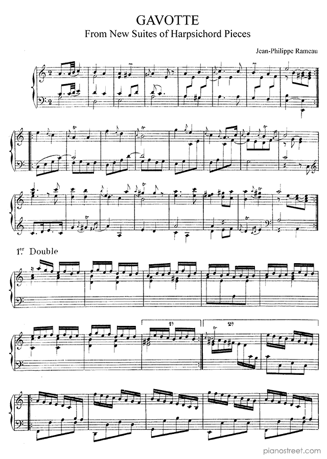 Downloadable piano sheet music from New Suites of Harpsichord Pieces by Jean Philippe Rameau to print: Gavotte with Six Variations No. 7 in A Minor (published in 1728)