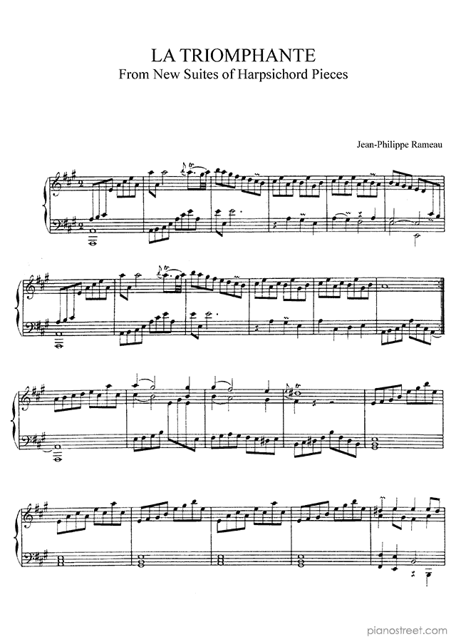 DOWNLOAD The Triumhpant One in A Major No. 6 by Jean Philippe Rameau (published in 1728) . High quality classical piano scores from the Piano Street sheet music library.