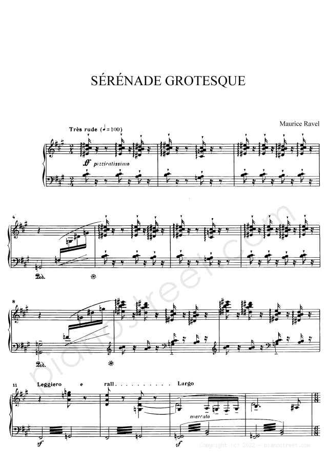 Classical piano sheet music by Ravel to download: Sérénade grotesque in the key of This piece has difficulty level 8+ in the category Piece