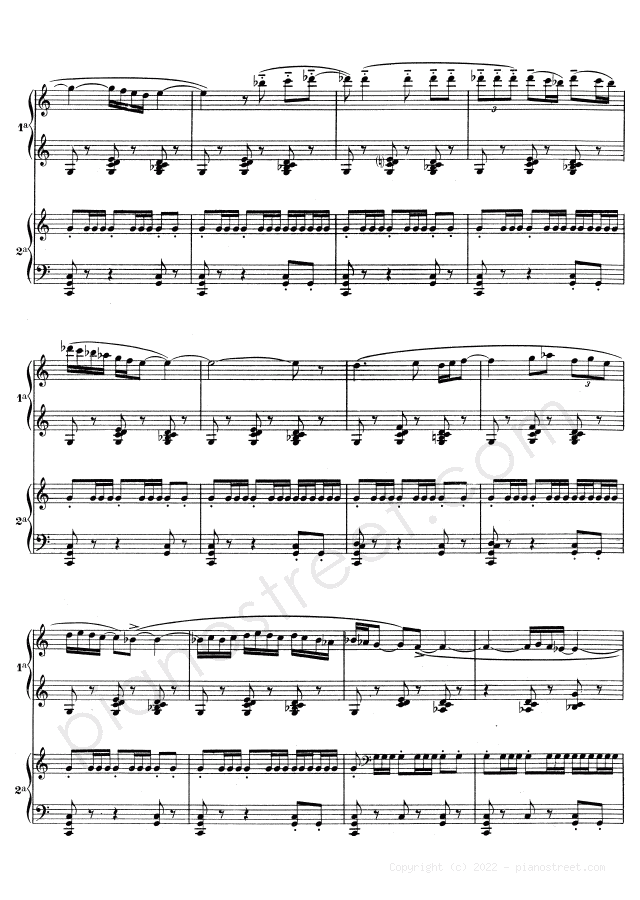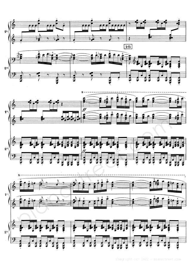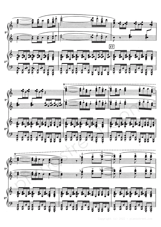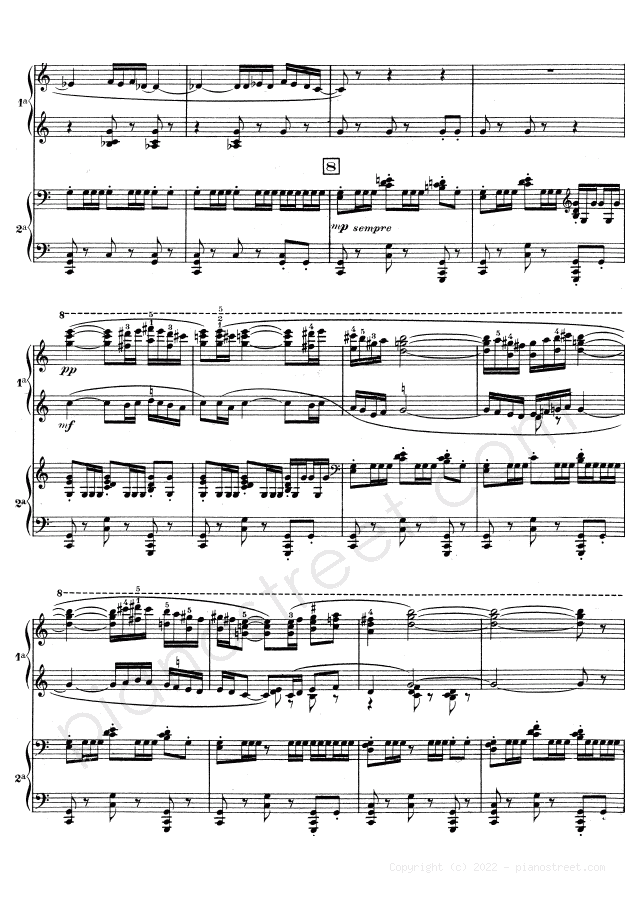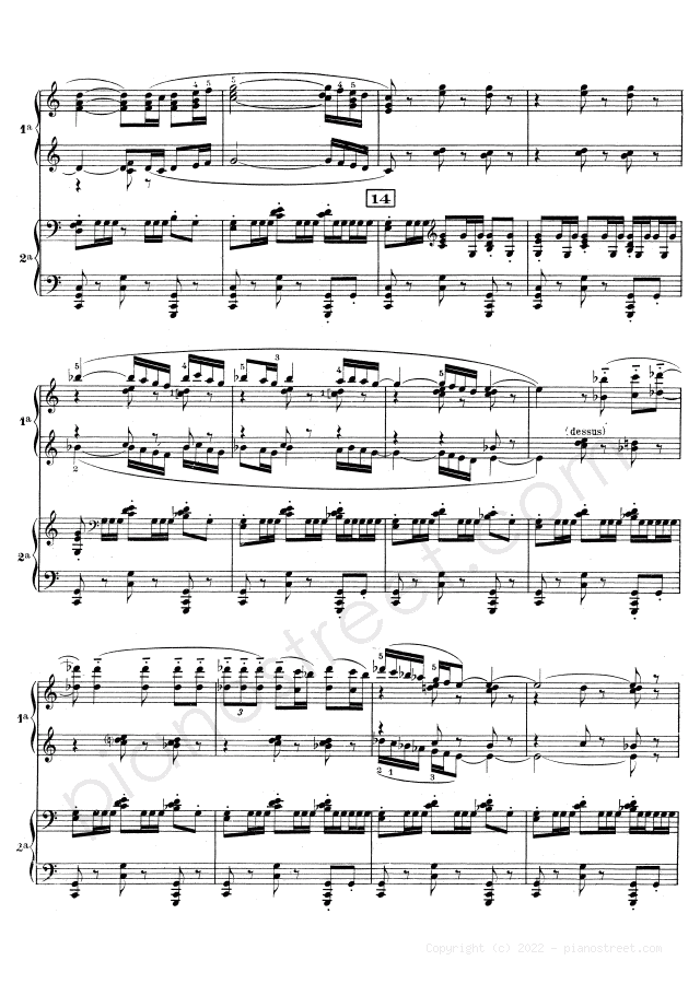 Classical piano sheet music by Ravel to download: Boléro - for four hands in the key of This piece has difficulty level 8+ in the category Piece, Four hands