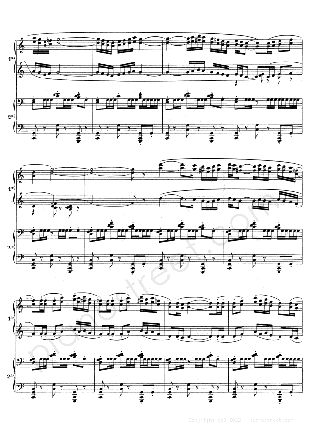 Boléro - for four hands in C Major, a composition by the impressionism composer Maurice Ravel who was born in 1875 and died in 1937. The piano score of this piece was first published in 1928 and is part of Ravel's Works for four hands or two pianos.