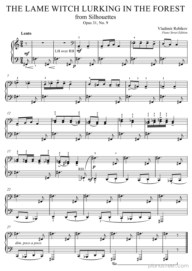 Downloadable piano sheet music by Vladimir Rebikov to print: The Lame Witch Lurking in the Forest Op. 31 No. 9 (published in 1929)