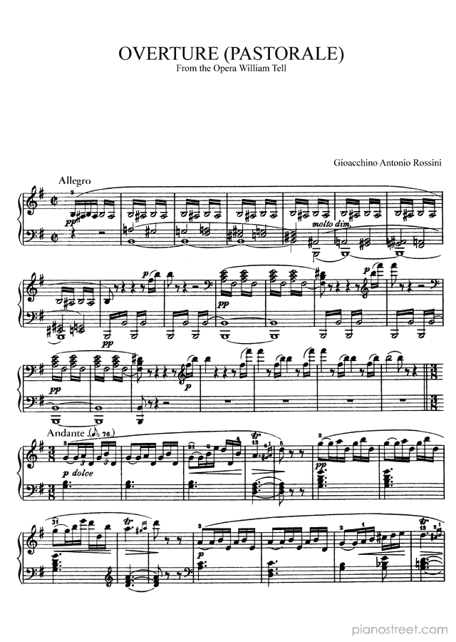 Gioacchino Rossini: Overture from William Tell in G Major - piano sheet music to print instantly. This piece is level 6 and was composed during the Early Romantic period.