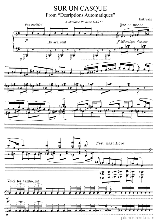 DOWNLOAD: Erik Satie - Sur un Casque No. 3 ( from Automatic Descriptions by Satie). Piano sheet music to print immediately or to view in mobile devices.