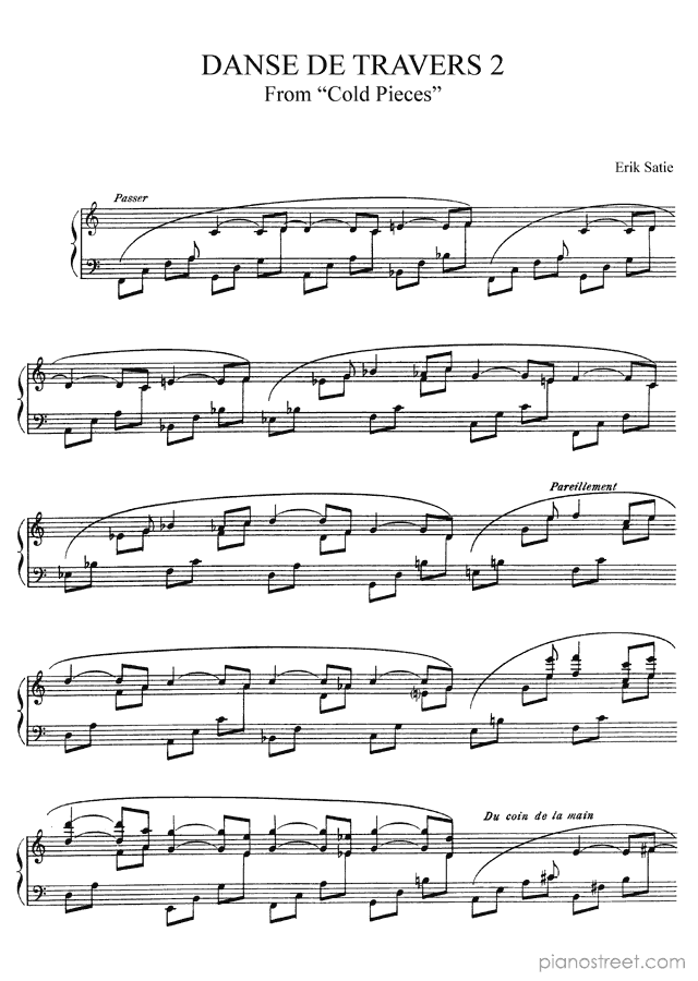 Classical piano sheet music by Satie to download: Danse de Travers 2 No. 5 in the key of This piece has difficulty level 7 in the category Piece