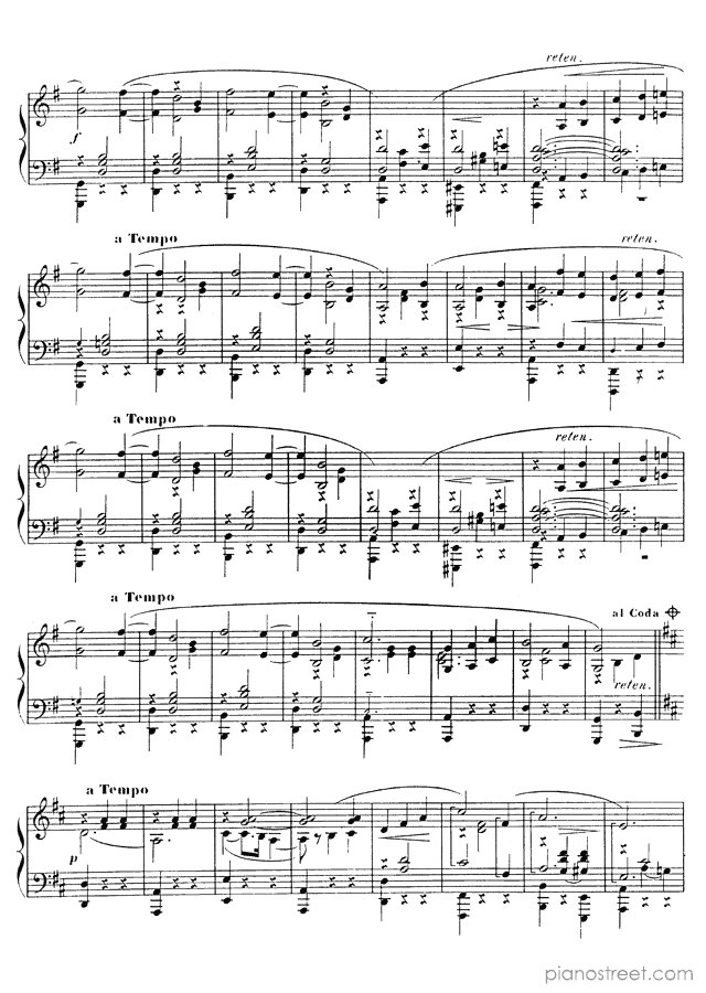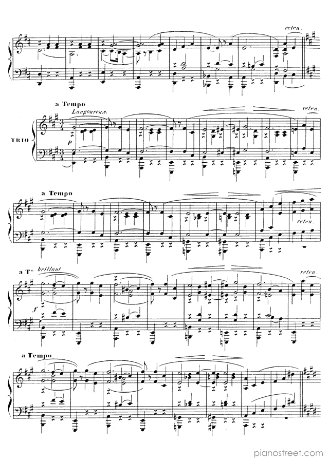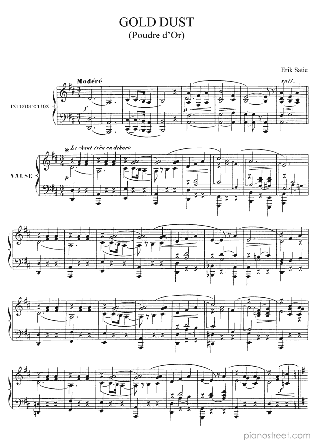 Piano sheet music and recordings. This piece is by Erik Satie: Gold Dust in D Major (published in 1901) . Level 7, Period: Impressionism