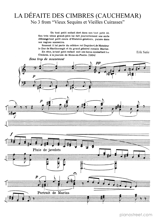 Downloadable piano sheet music from Old Sequins and Old Breastplates by Erik Satie to print: La Défaite des Cimbres (Cauchemar) No. 3 (published in 1913)