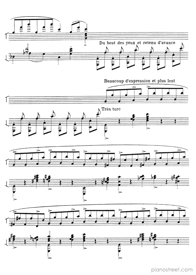 Impressionism piano sheet music by Erik Satie to download and print instantly: Tyrolienne Turque No. 1 in the key of . Level 8, compositional type: Piece (published in 1913)