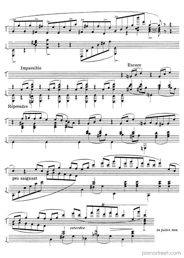 The piece was published in 1913 and is included in Satie's Sketches and Provocations of a Portly Wooden Manni.