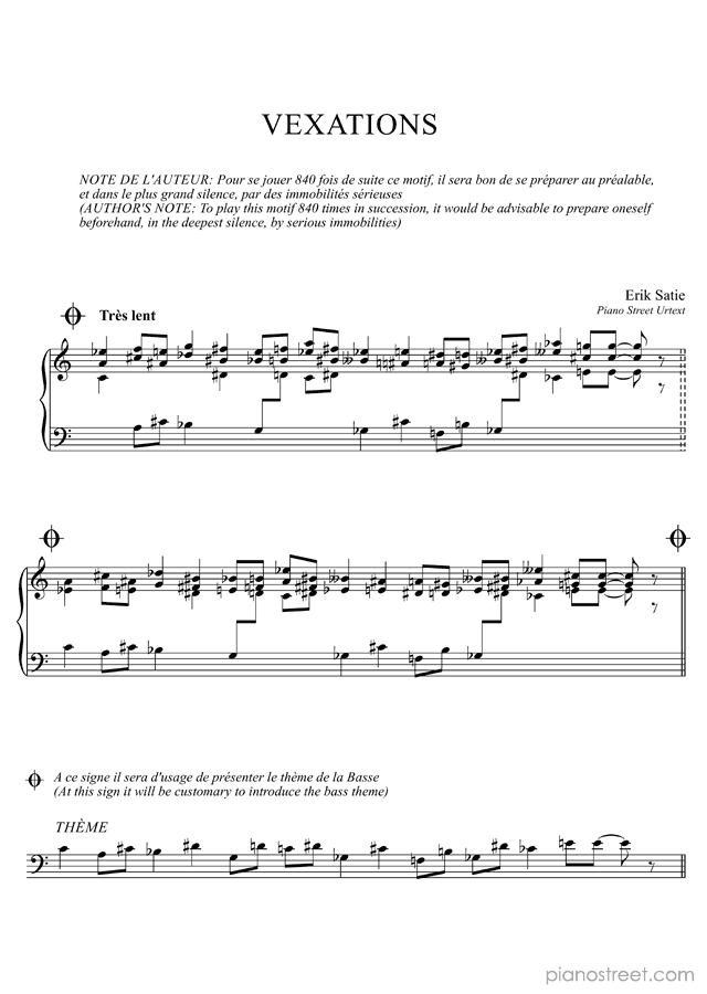 Vexations (published in 1893) by Erik Satie - piano sheet music to download and print instantly.