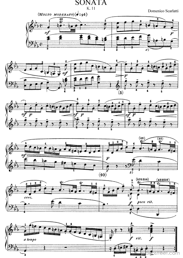 Downloadable piano sheet music from Sonatas by Domenico Scarlatti to print: Sonata K. 11 in C Minor