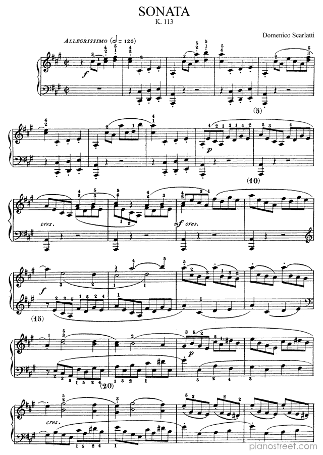 Scarlatti: Sonata K. 113 in A Major . DOWNLOAD piano sheet music from Piano Street digital sheet music library.