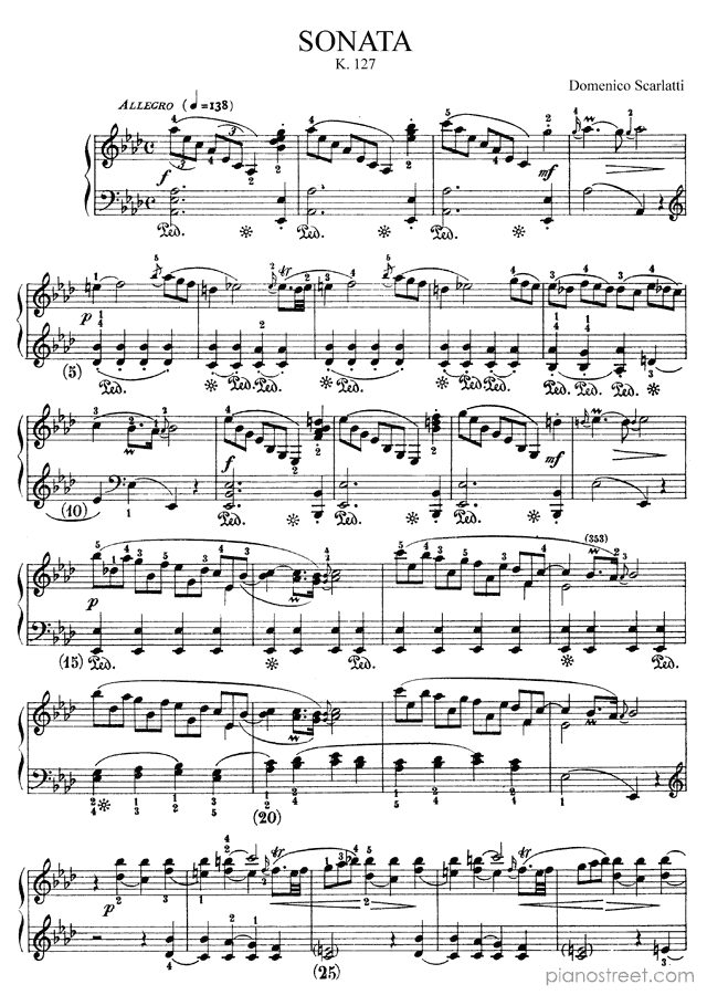 Sonata in A-flat Major - K. 127 is a piano piece by the baroque composer Domenico Scarlatti who lived between the years 1685 and 1757.