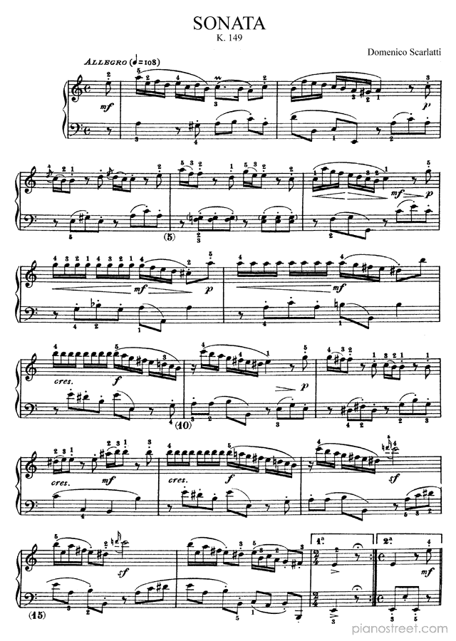 Classical piano sheet music by Scarlatti to download: Sonata K. 149 in the key of This piece has difficulty level 7 in the category Sonata