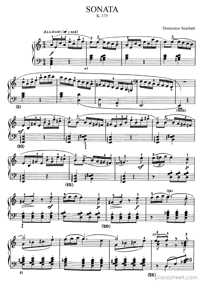 Domenico Scarlatti: Sonata K. 175 in A Minor from Sonatas - piano sheet music to print instantly. This piece is level 7 and was composed during the Baroque period.