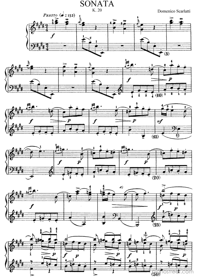 Classical piano sheet music by Scarlatti to download: Sonata K. 20 in the key of This piece has difficulty level 7 in the category Sonata