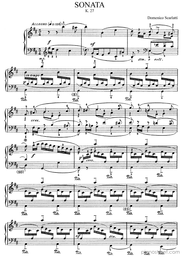 Baroque piano sheet music by Domenico Scarlatti to download and print instantly: Sonata K. 27 in the key of . Level 6, composition type: Sonata