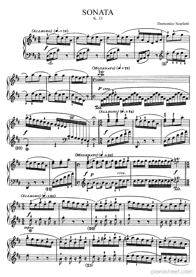 Scarlatti: Sonata K. 33 in D Major . DOWNLOAD piano sheet music from Piano Street digital sheet music library.