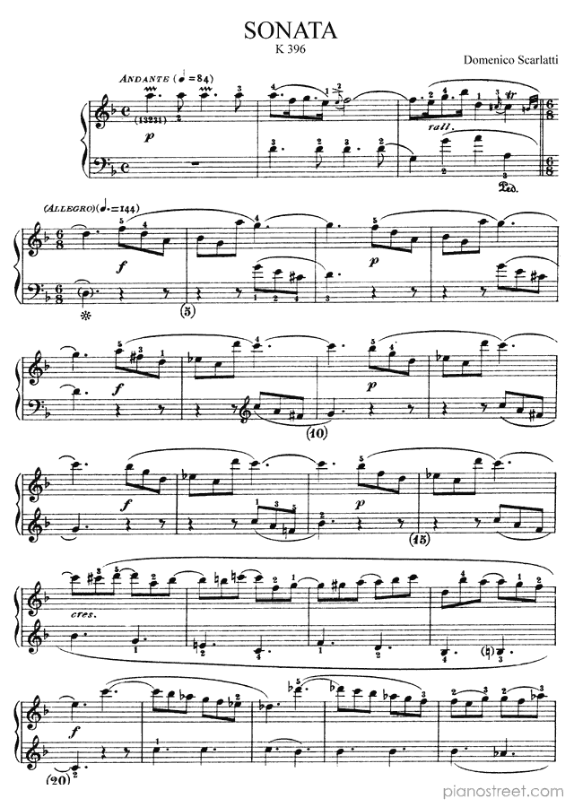 Downloadable piano sheet music from Sonatas by Domenico Scarlatti to print: Sonata K. 396 in D Minor