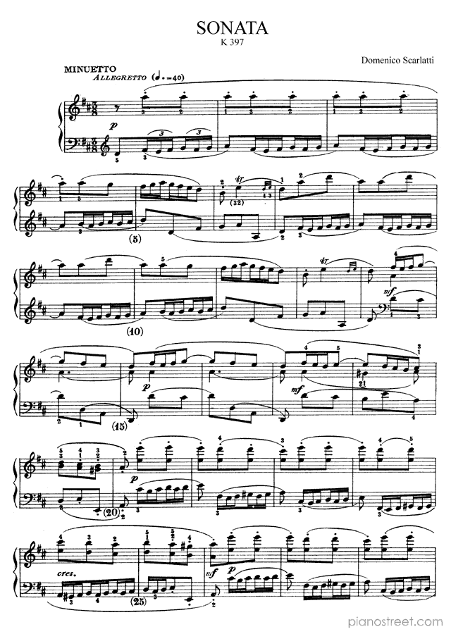 Classical piano sheet music by Scarlatti to download: Sonata K. 397 in the key of This piece has difficulty level 5 in the category Sonata