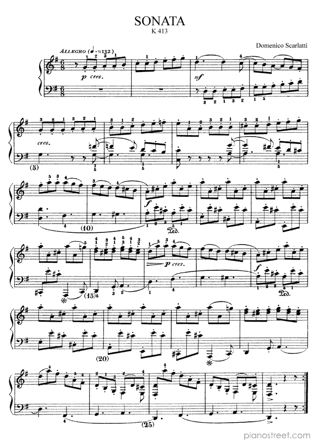 Sonata in G Major - K. 413 is a piano piece by the baroque composer Domenico Scarlatti who lived between the years 1685 and 1757.
