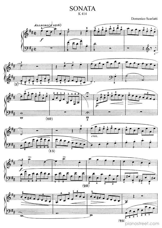 DOWNLOAD: Domenico Scarlatti - Sonata K. 414 in D Major ( from Sonatas by Scarlatti). Piano sheet music to print immediately or to view in mobile devices.