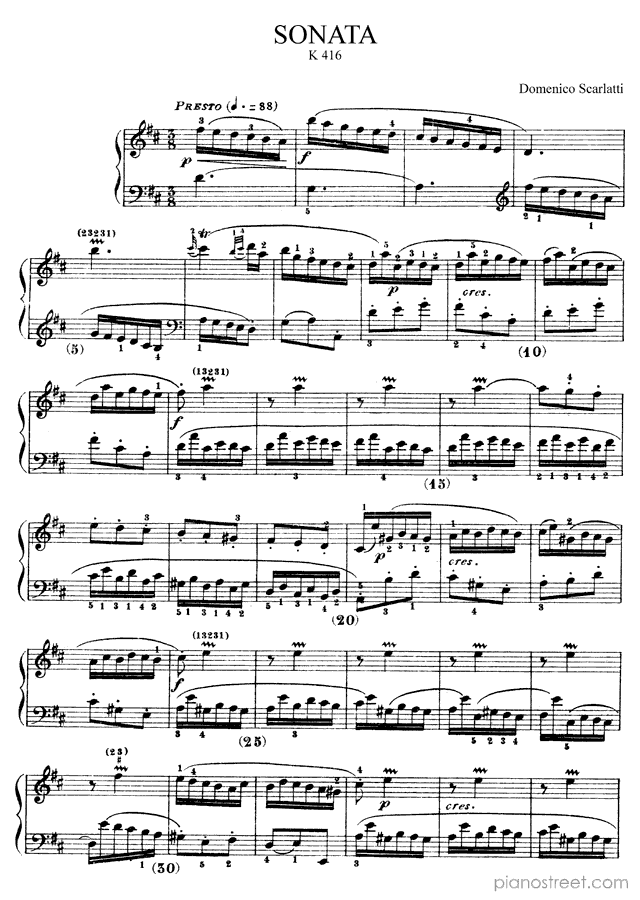 Downloadable piano sheet music from Sonatas by Domenico Scarlatti to print: Sonata K. 416 in D Major