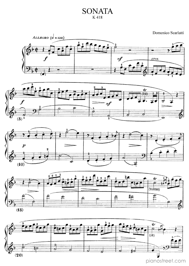Baroque piano sheet music by Domenico Scarlatti to download and print instantly: Sonata K. 418 in the key of . Level 6, compositional type: Sonata
