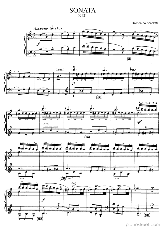 Scarlatti: Sonata K. 421 in C Major . DOWNLOAD piano sheet music from Piano Street digital sheet music library.