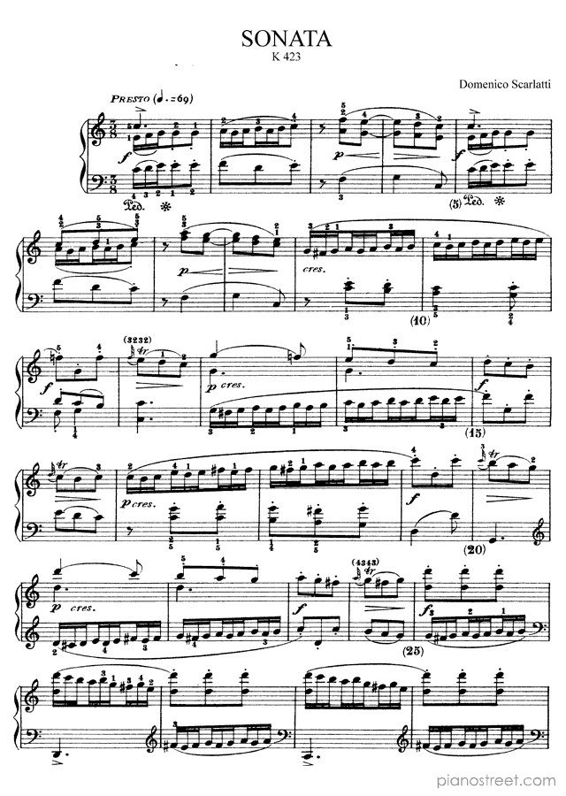 Sonata in C Major - K. 423 is a piano piece by the baroque composer Domenico Scarlatti who lived between the years 1685 and 1757.