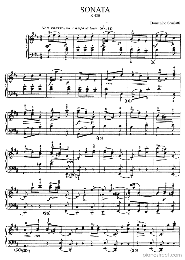 Domenico Scarlatti: Sonata K. 430 in D Major from Sonatas - piano sheet music to print instantly. This piece is level 6 and was composed during the Baroque period.