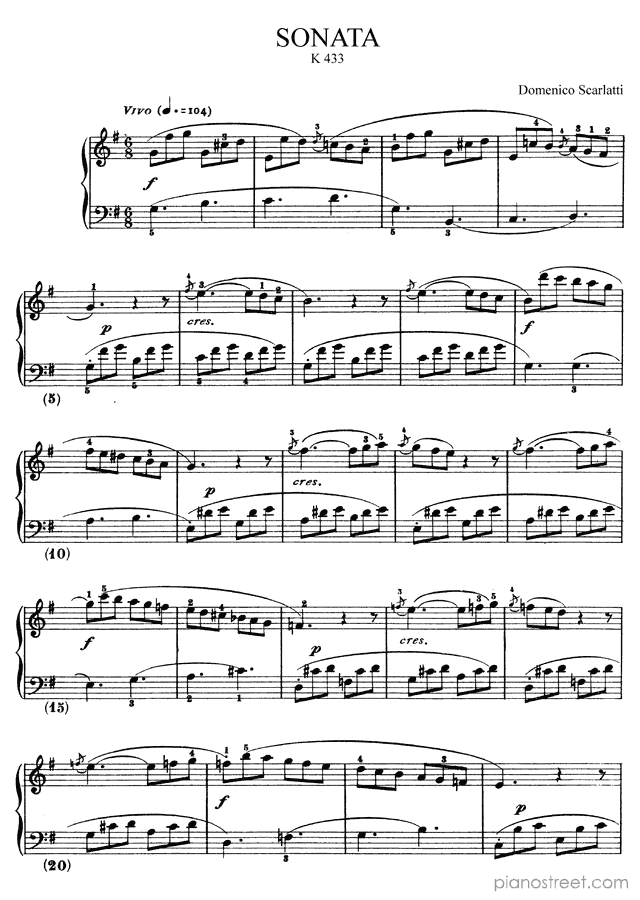Sonata in G Major - K. 433 is a piano piece by the baroque composer Domenico Scarlatti who lived between the years 1685 and 1757.