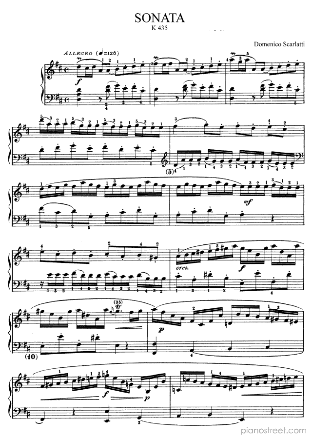 DOWNLOAD Sonata in D Major K. 435 by Domenico Scarlatti. High quality classical piano scores from the Piano Street sheet music library.