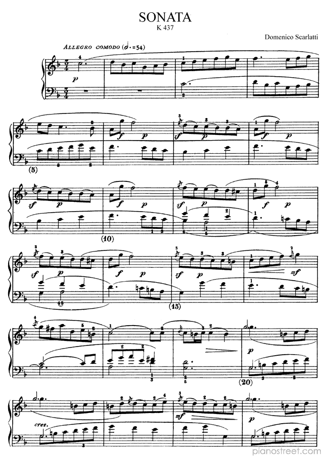 Classical piano sheet music by Scarlatti to download: Sonata K. 437 in the key of This piece has difficulty level 6 in the category Sonata
