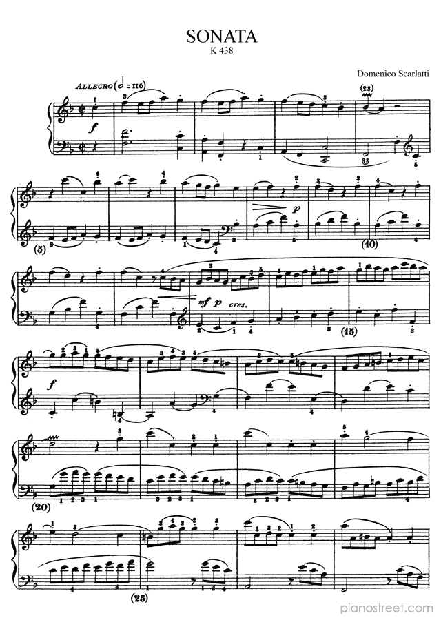 Baroque piano sheet music by Domenico Scarlatti to download and print instantly: Sonata K. 438 in the key of . Level 6, compositional type: Sonata
