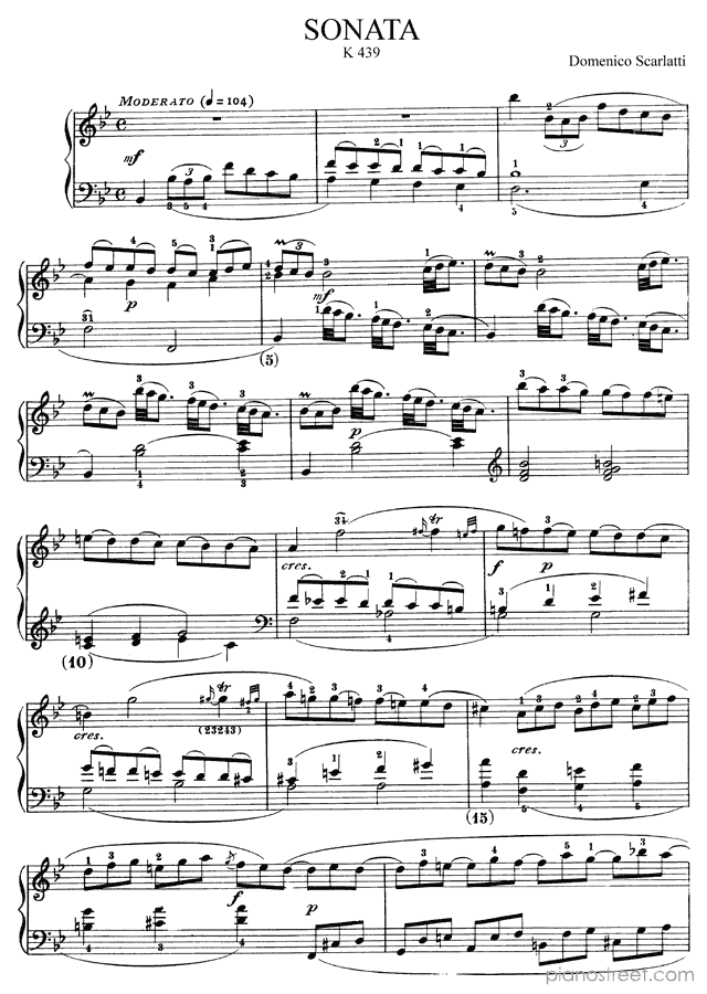 Piano sheet music and recordings. This piece is from Sonatas by Domenico Scarlatti: Sonata K. 439 in B-flat Major . Level 7, Period: Baroque