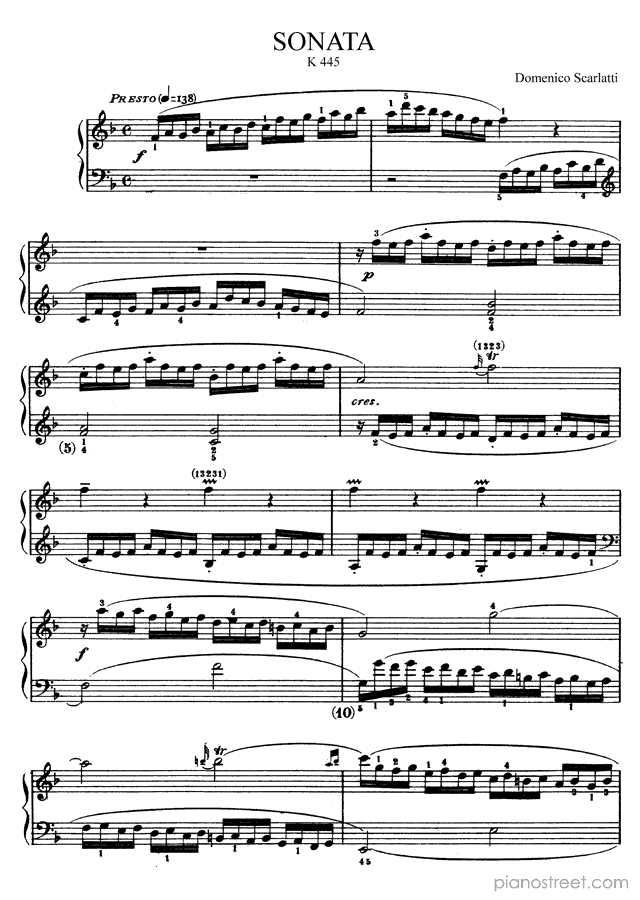 DOWNLOAD Sonata in F Major K. 445 by Domenico Scarlatti. High quality classical piano scores from the Piano Street sheet music library.