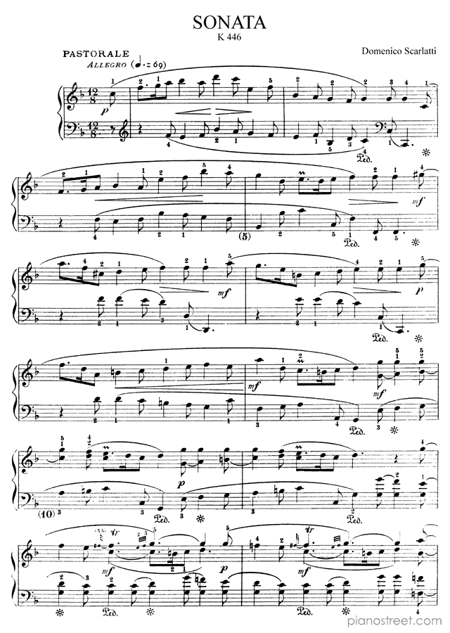 Downloadable piano sheet music from Sonatas by Domenico Scarlatti to print: Sonata K. 446 in F Major