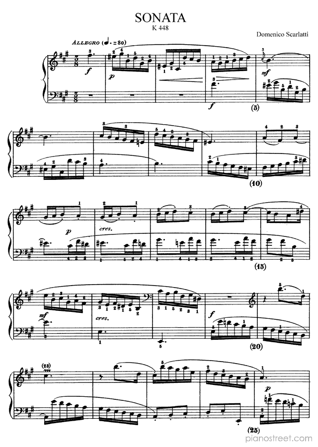 Baroque piano sheet music by Domenico Scarlatti to download and print instantly: Sonata K. 448 in the key of . Level 6, compositional type: Sonata