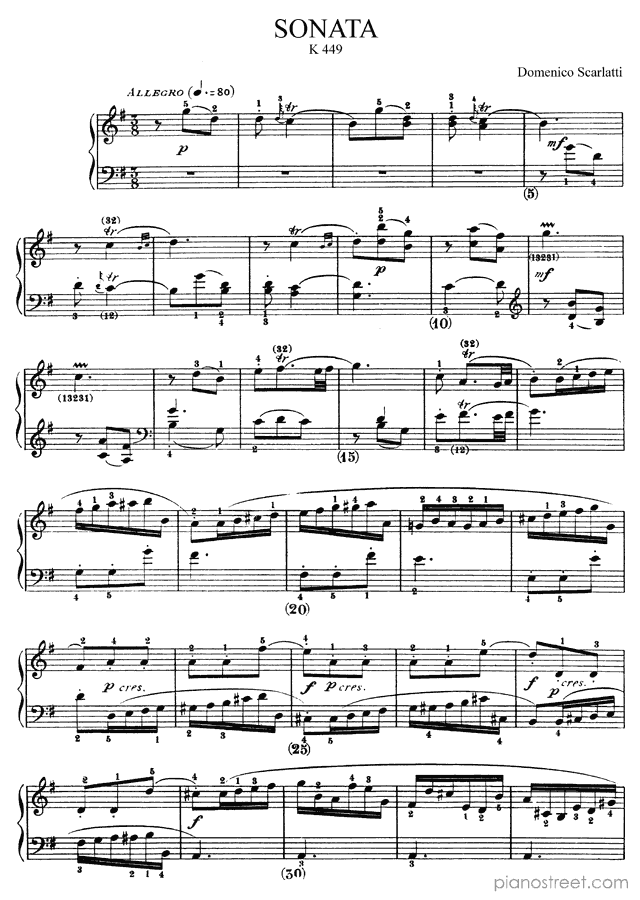 Piano sheet music and recordings. This piece is from Sonatas by Domenico Scarlatti: Sonata K. 449 in G Major . Level 7, Period: Baroque