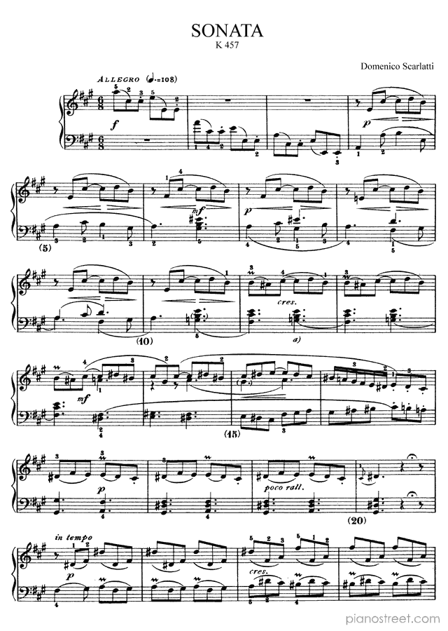 DOWNLOAD Sonata in A Major K. 457 by Domenico Scarlatti. High quality classical piano scores from the Piano Street sheet music library.