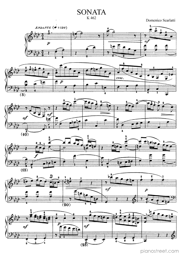 Domenico Scarlatti: Sonata K. 462 in F Minor from Sonatas - piano sheet music to print instantly. This piece is level 6 and was composed during the Baroque period.