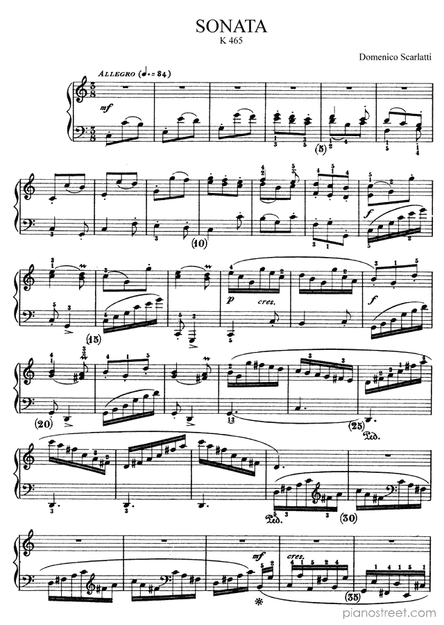 Sonata in C Major - K. 465 is a piano piece by the baroque composer Domenico Scarlatti who lived between the years 1685 and 1757.