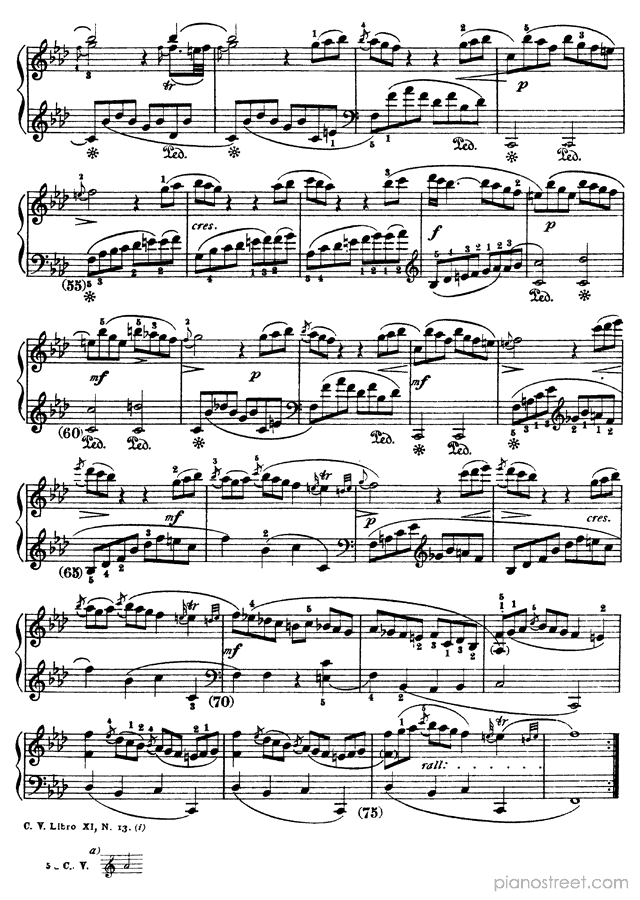 Combining a motif in broken chords with a motif in triplets, this highly expressive sonata creates an effect akin to resigned, sorrowful sighs.