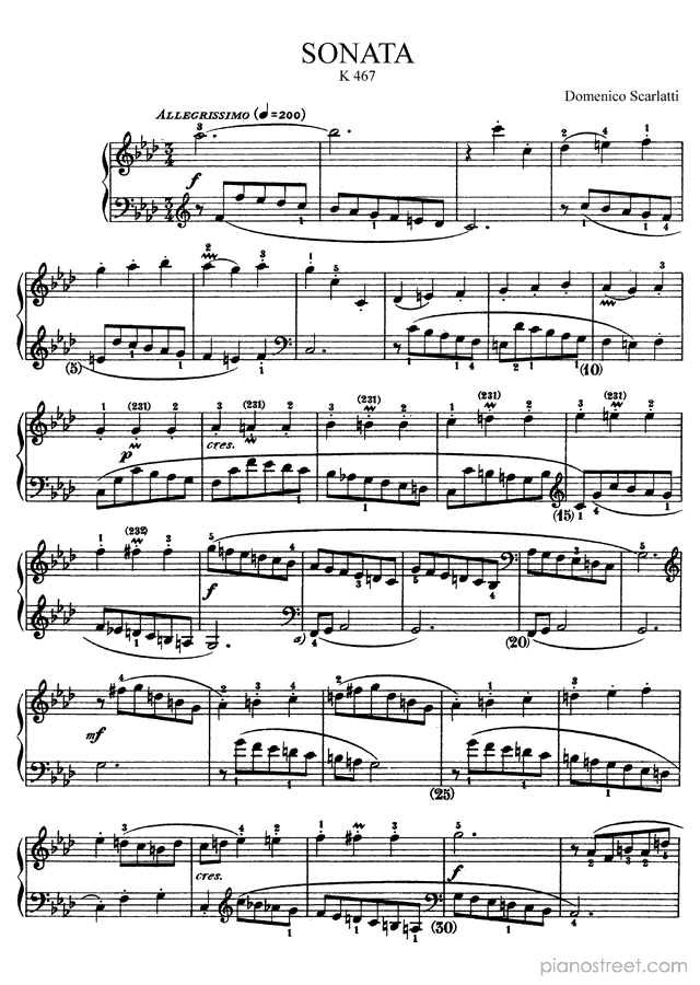 DOWNLOAD Sonata in F Minor K. 467 by Domenico Scarlatti. High quality classical piano scores from the Piano Street sheet music library.