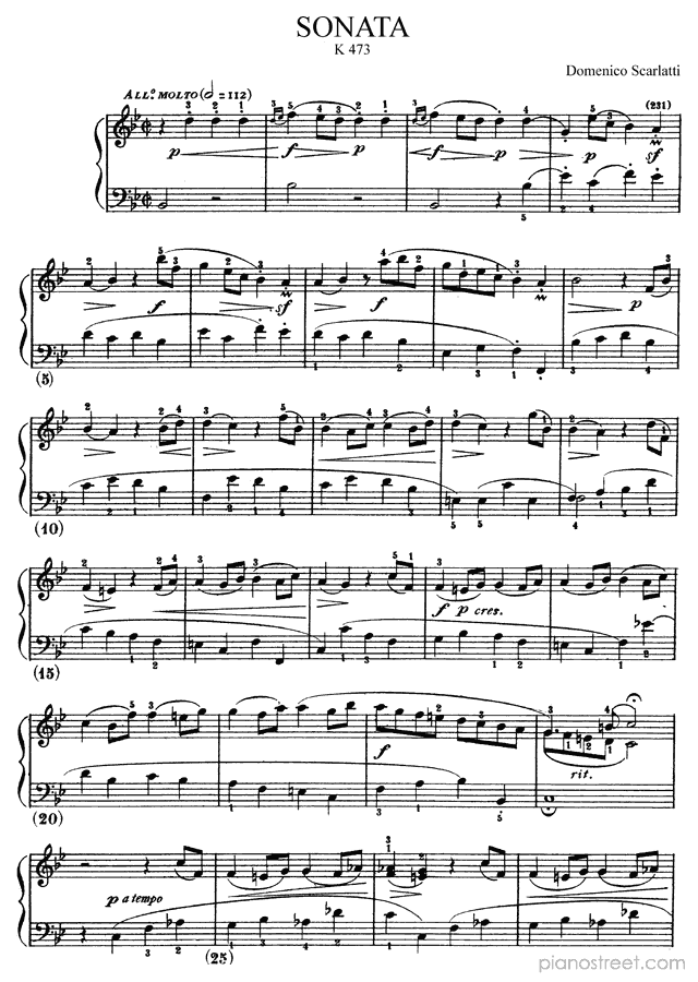 Scarlatti: Sonata K. 473 in B-flat Major . DOWNLOAD piano sheet music from Piano Street digital sheet music library.